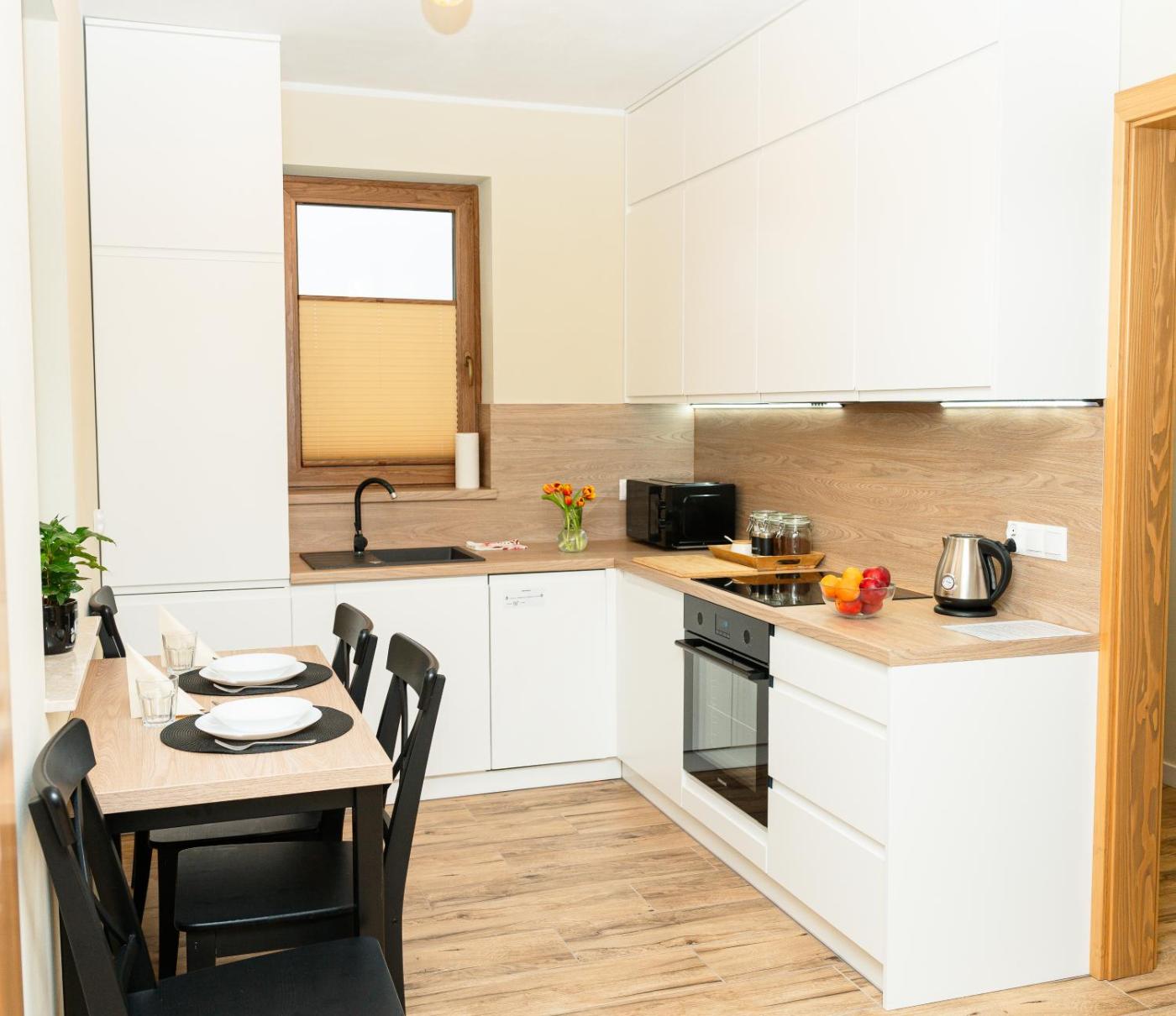 Apartament z 2 sypialniami. This apartments standout feature is the fireplace. This spacious apartment is comprised of 1 living room, 2 separate bedrooms and 2 bathrooms with a bath and a shower. Guests will find a stovetop, a refrigerator, a dishwasher and kitchenware in the fully equipped kitchen. The apartment also has a barbecue. The apartment features a washing machine, a private entrance, a tea and coffee maker as well as a terrace with garden views. The unit offers 4 beds. Apartament - 6 osobowy. Powierzchnia pokoju ok.: 80 mkw. ;